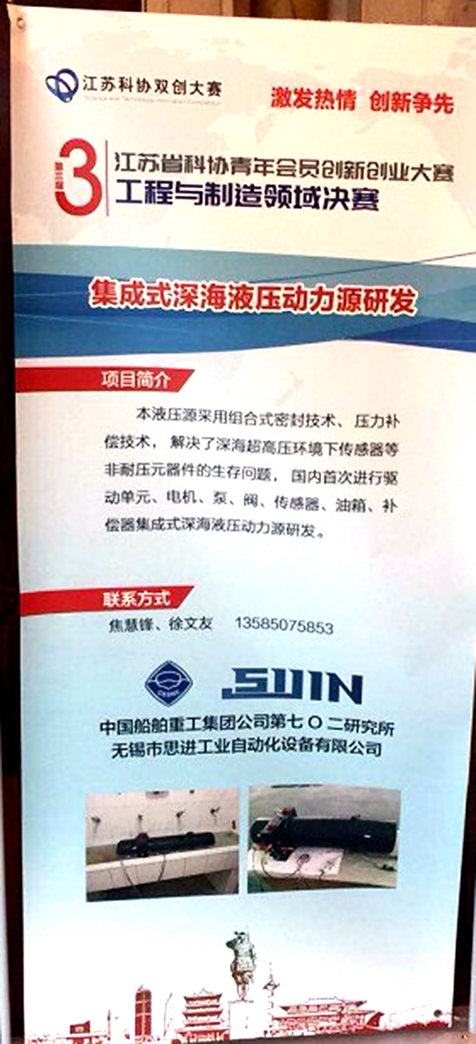 我公司榮獲第三屆江蘇省科協(xié)青年會(huì)員創(chuàng)新創(chuàng)業(yè)大賽優(yōu)秀獎(jiǎng)(集成式深海液壓動(dòng)力源研發(fā))。