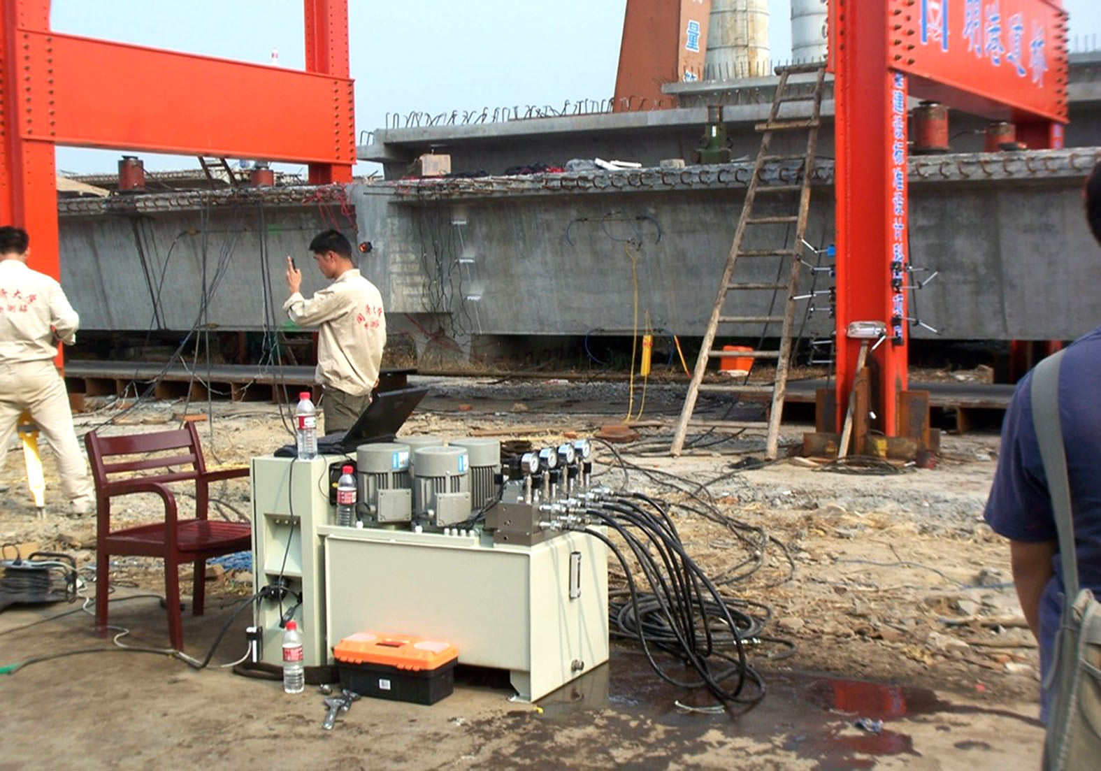 上海同濟(jì)大學(xué)橋梁等比例加載試驗(yàn)---PLC四點(diǎn)同步頂升液壓控制系統(tǒng)